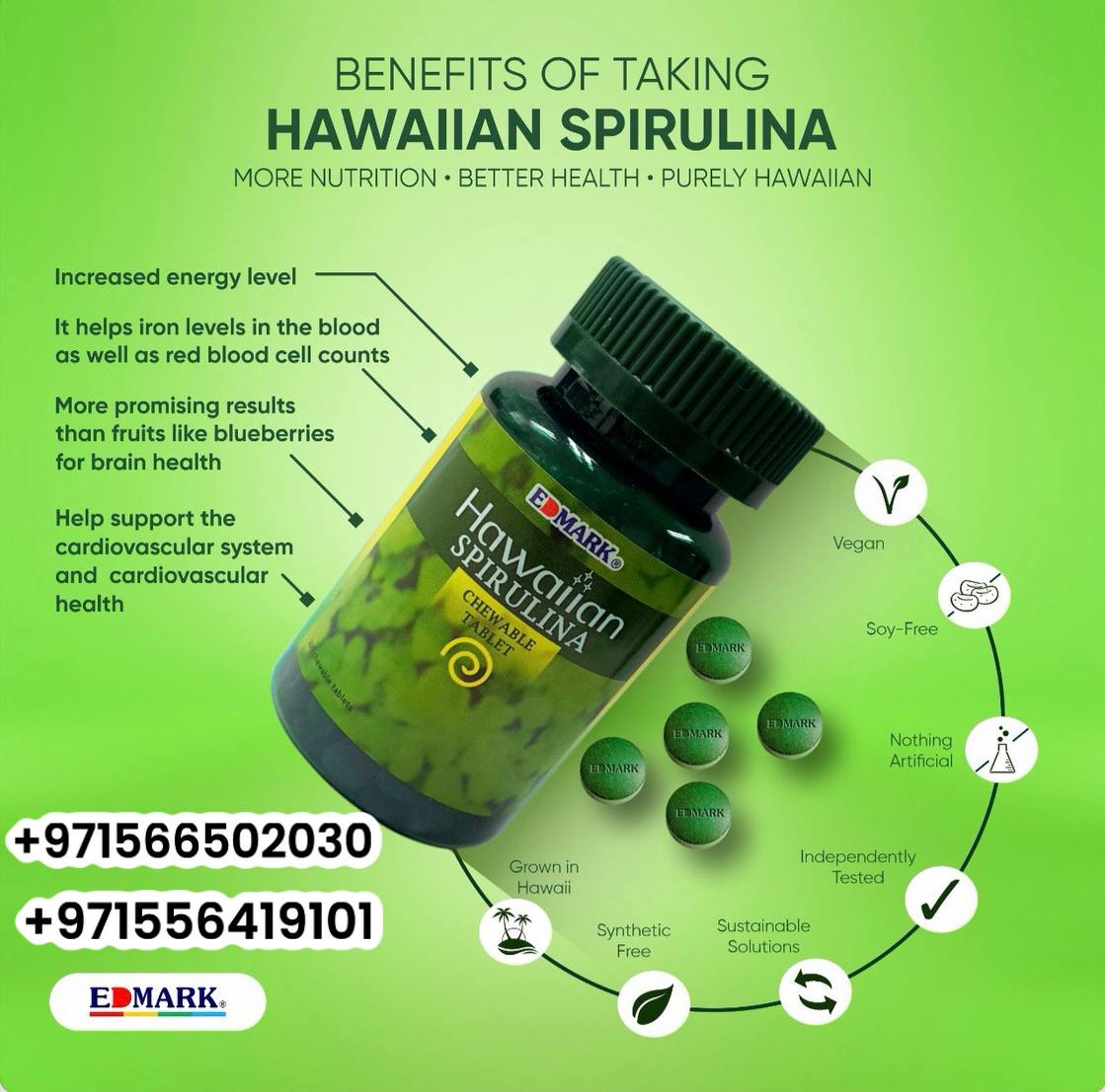 سبيرولينا المستنبتة الخالصة التي يتم حصادها من كونا ، هاواي ، التي تنعم بمياه البحر النقية على عمق 600 متر حيث توفرالعناصر الغذائية الرئيسية الأكثر فعالية من أي منتج سبيرولينا آخر.